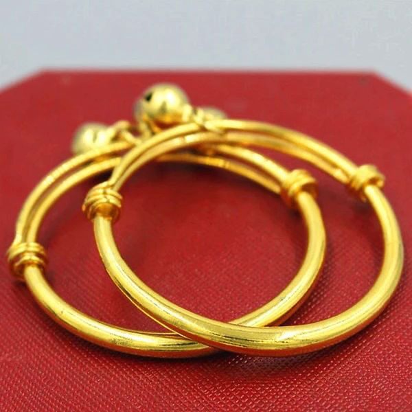 银手镯婴儿童9999纯银男女宝宝银镯子小孩子光面铃铛脚镯满月周岁