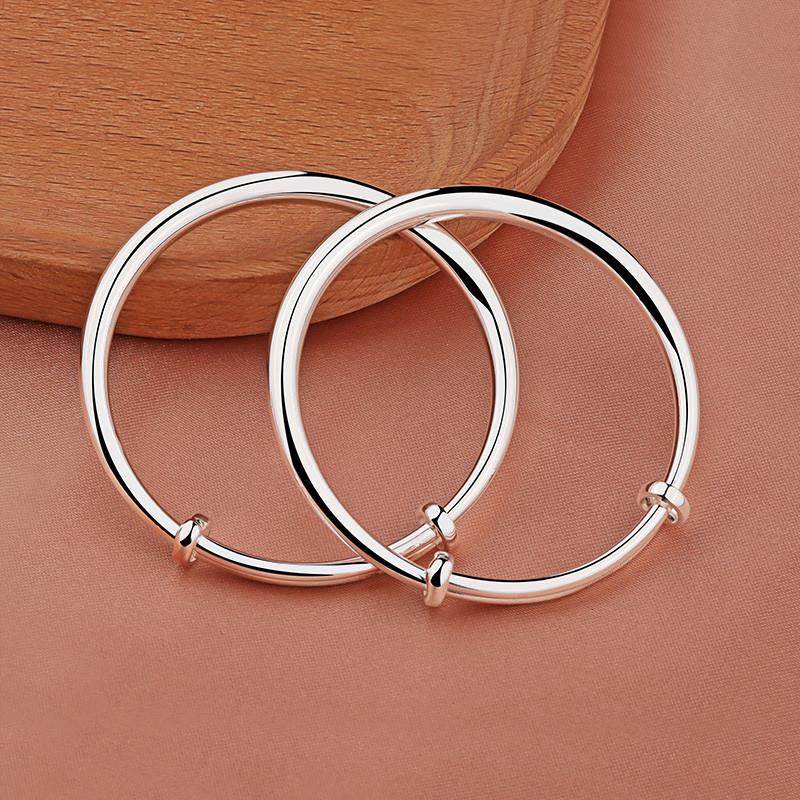 宝宝银手镯9999纯银光面推拉实心婴儿童脚镯满月周岁礼物足银镯子