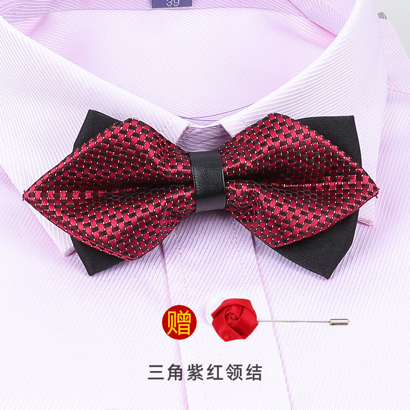 尖角平角蝴蝶结领结男结婚婚礼新郎衬衫兄弟团英伦3D水晶时尚酒红