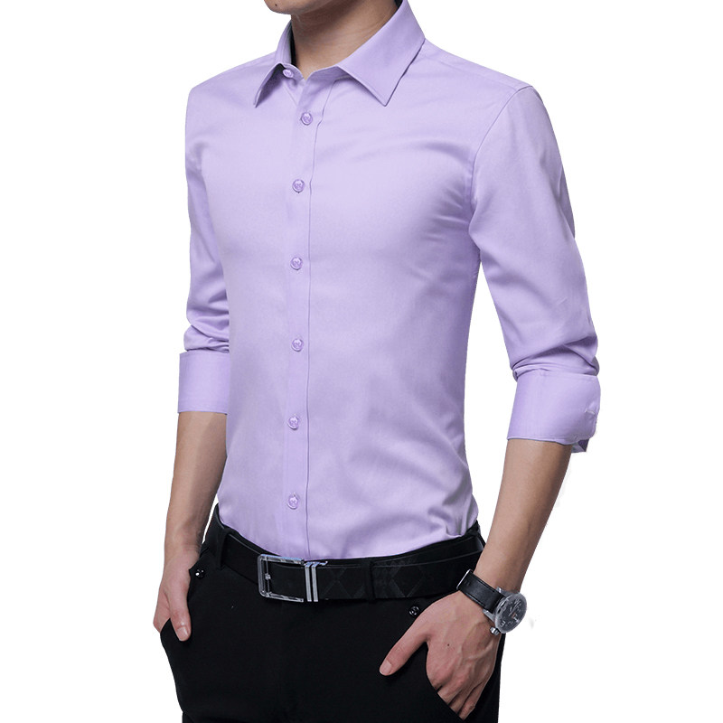 浅紫色加绒衬衫衣男长袖韩版防皱村杉加厚保暖结婚U伴新郎衬衫打