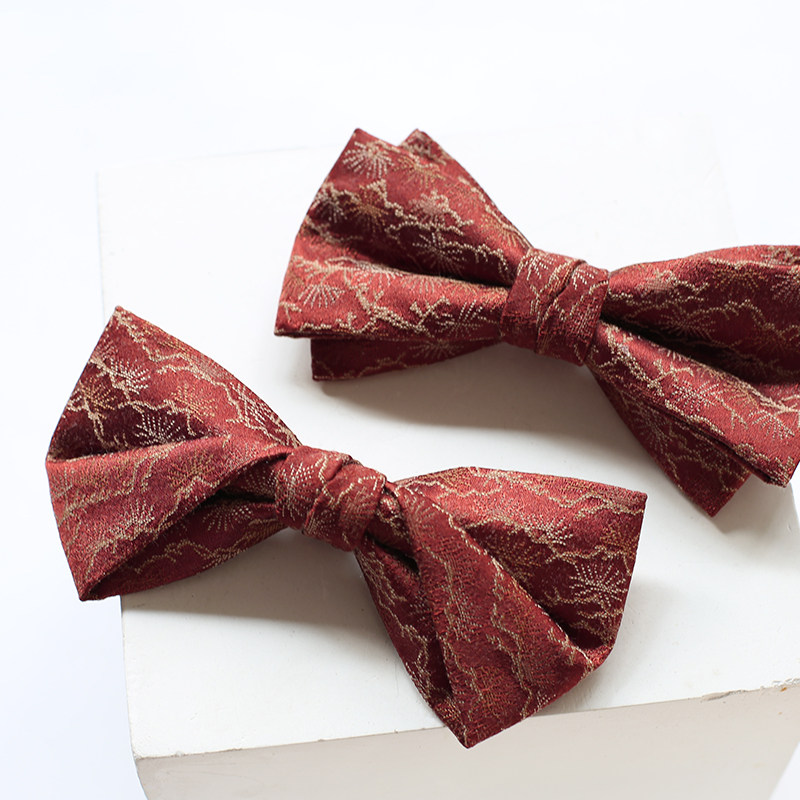 17Century滇红色复古领结煲呔蝴蝶结婚礼服新郎衬衫伴郎正装敬酒