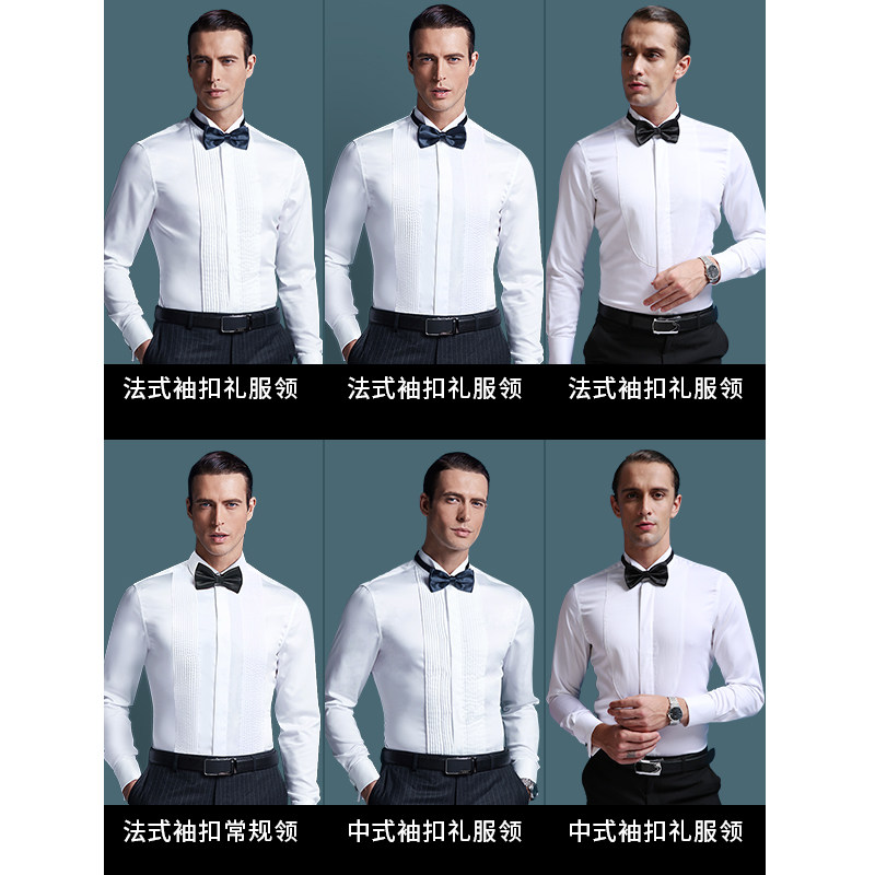 新郎衬衫男长袖燕子领结婚法式宴会婚礼伴郎表演主持男士礼服衬衣