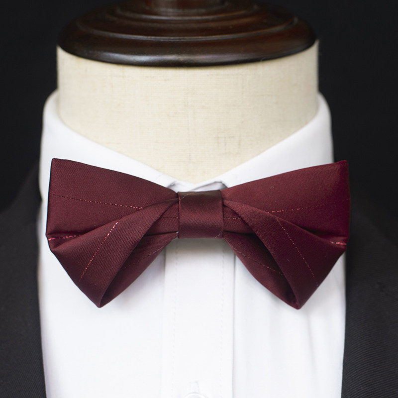 17Century酒红色金条领结煲呔蝴蝶结婚礼服新郎衬衫伴郎正装敬酒