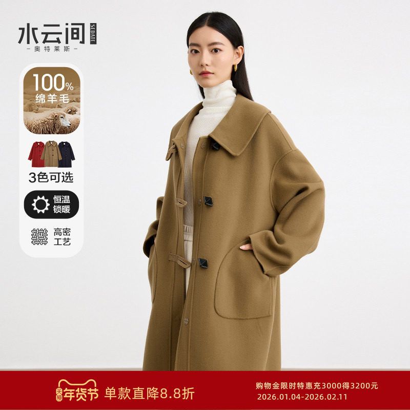 水云间纯羊毛大衣双面毛呢外套女学院风中长款柔韧大女主2025冬款