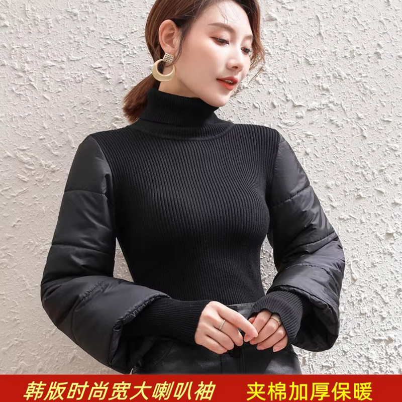 羽绒棉袖打底衫内搭韩版女士冬季新款针织衫修身显瘦毛衣加绒加厚