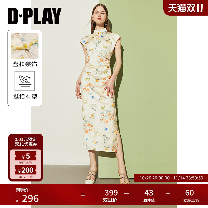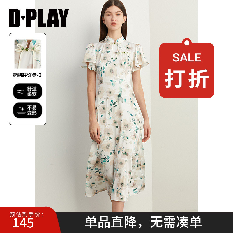 清仓DPLAY夏复古新中式墨韵蔷薇盘扣旗袍国风连衣裙女长裙沙滩裙