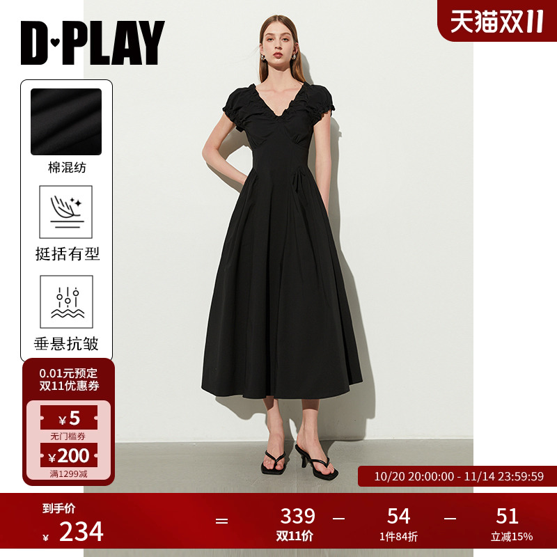 DPLAY2025夏季新款黑色连衣裙气质法式连衣裙小黑裙女长裙沙滩裙