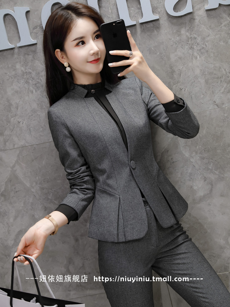 职业装套装女秋冬新款时尚气质灰色西服正装大学生面试工装工作服