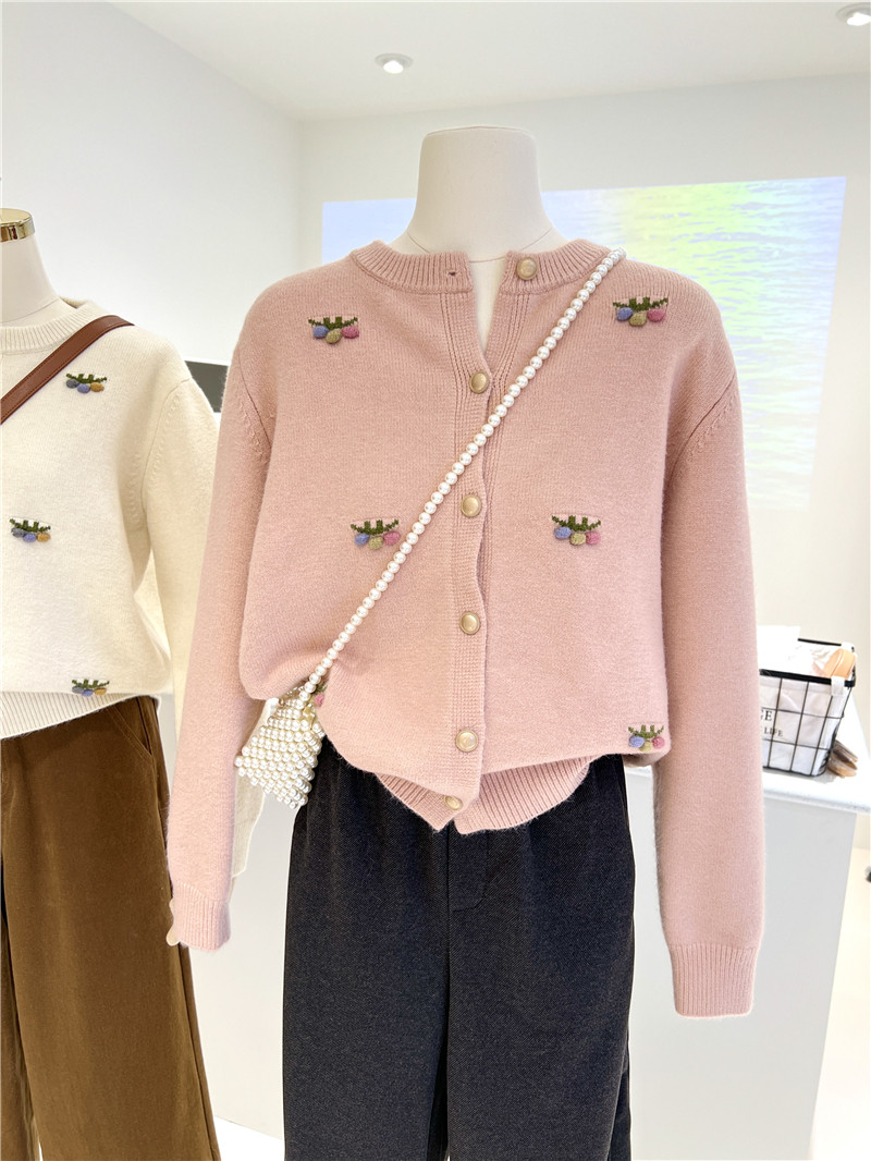- 女款刺绣针织开衫