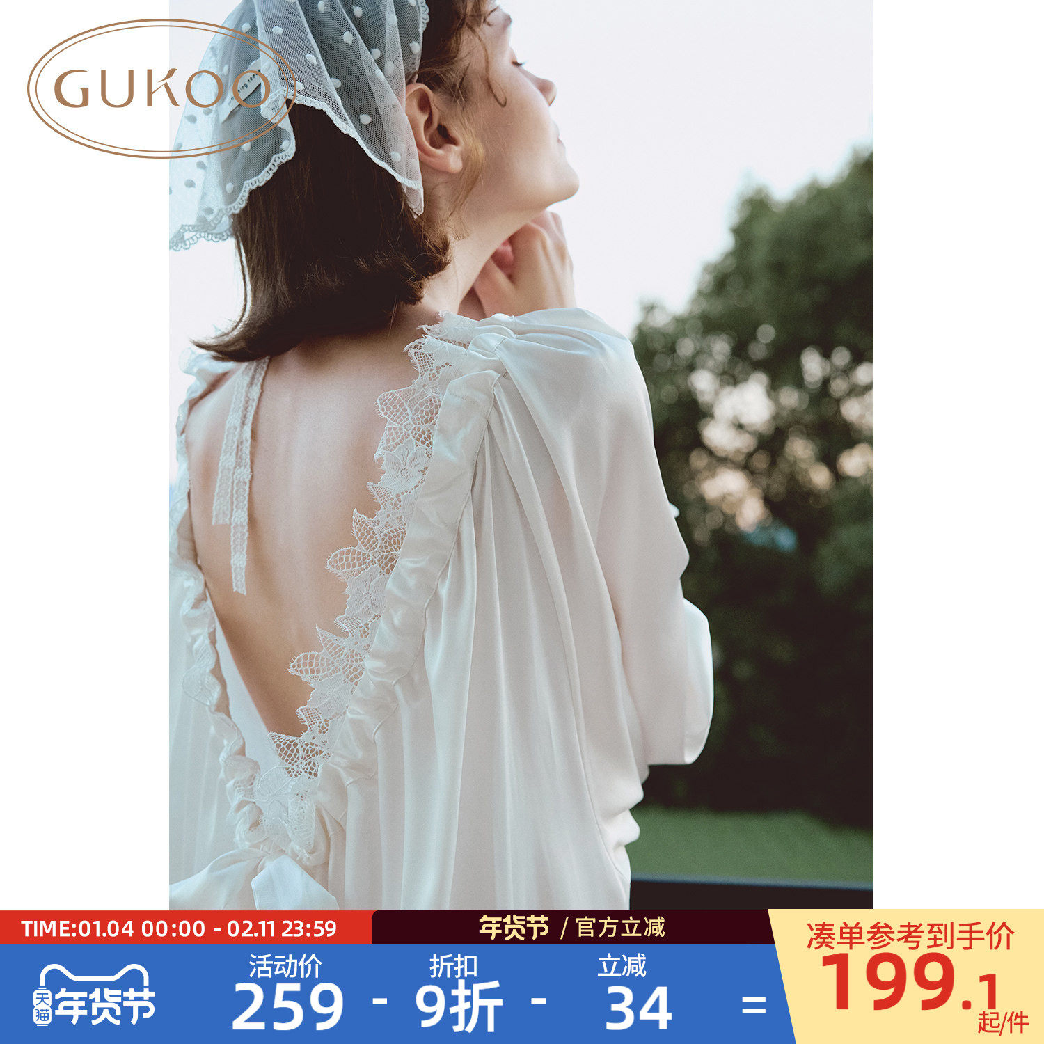 Gukoo/果壳睡裙女春秋款白色甜美新款简约女士家居服睡裙A