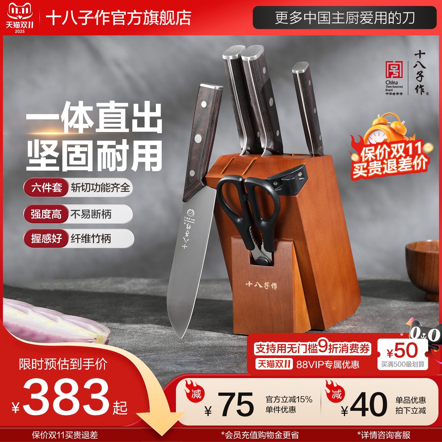 十八子作刀具厨房菜刀套装组合80cr复合钢自带磨刀器家用旗舰阳江
