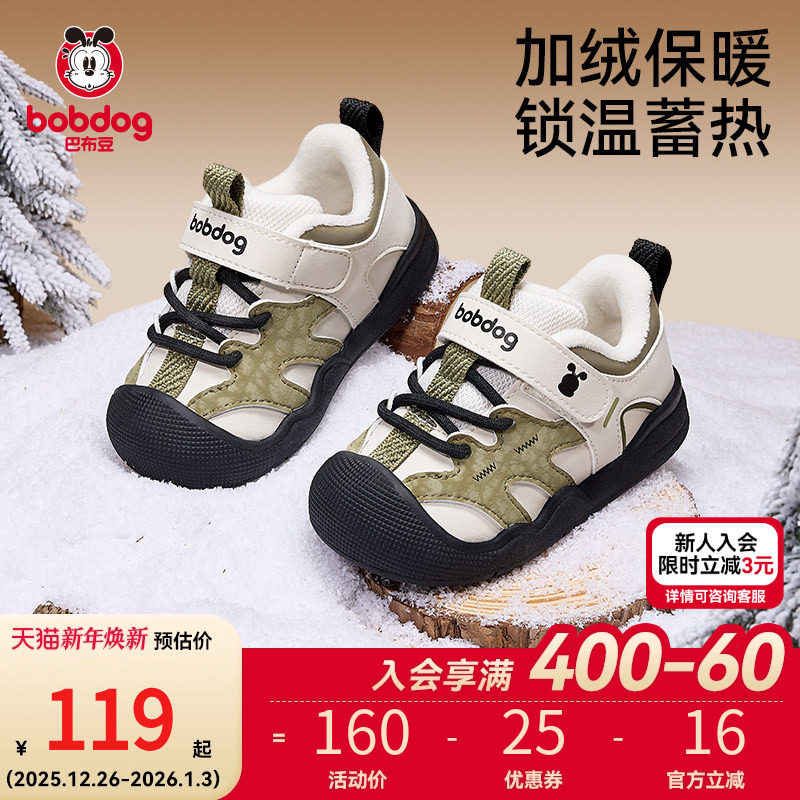 巴布豆学步鞋宝宝鞋子加绒冬季新款婴儿机能鞋男童童鞋儿童二棉鞋
