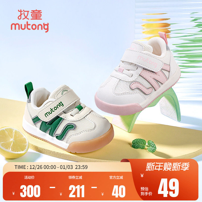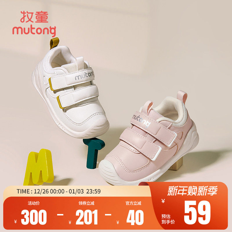 牧童学步鞋秋季女童婴幼儿软底周岁宝宝学步机能鞋子男童鞋小白鞋