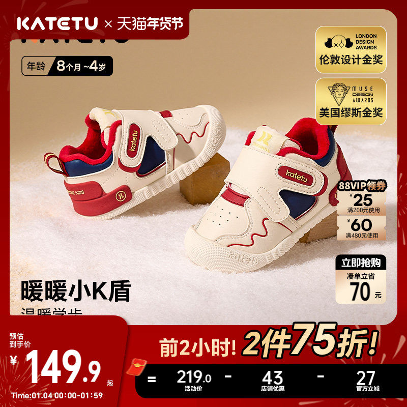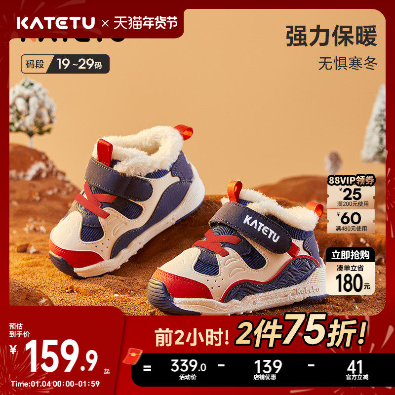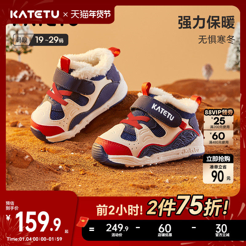 卡特兔宝宝男童2025秋冬童鞋新款女童鞋子婴儿儿童机能加绒学步鞋