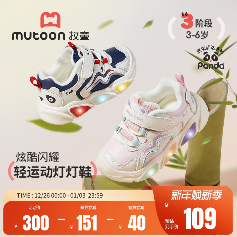 牧童男童学步鞋秋冬小童闪灯机能鞋女童轻便减震运动鞋儿童休闲鞋