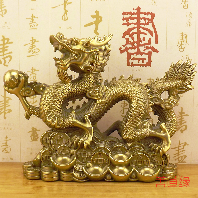 12十二生肖龙摆件仿纯铜龙汉龙纳福酒柜风水工艺品摆设品家居饰品