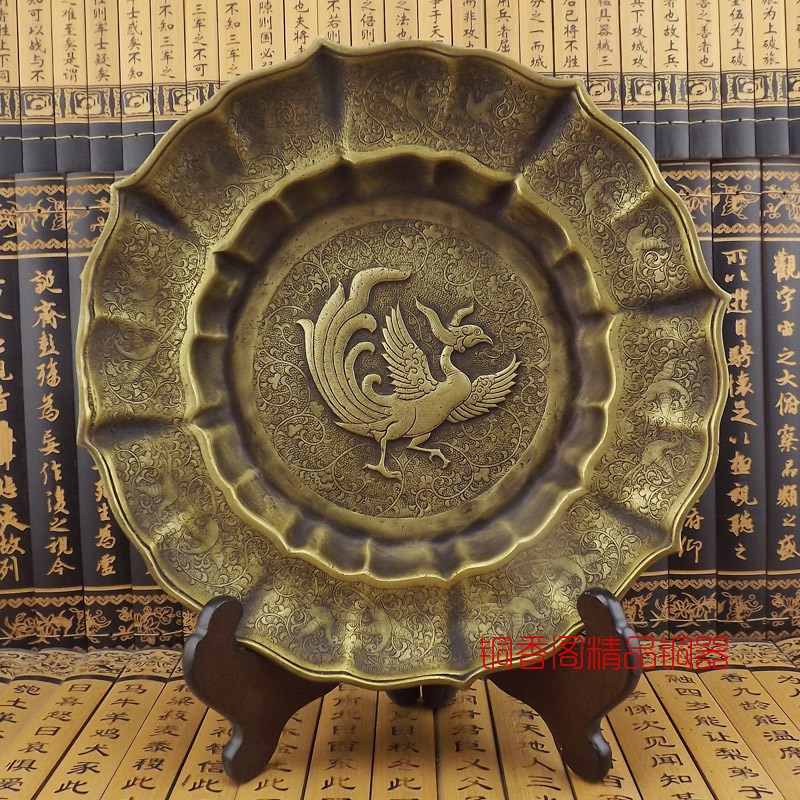 实心纯铜龙盘凤盘招财龙盘龙凤呈祥铜盘子仿古铜器家居招财摆件铜