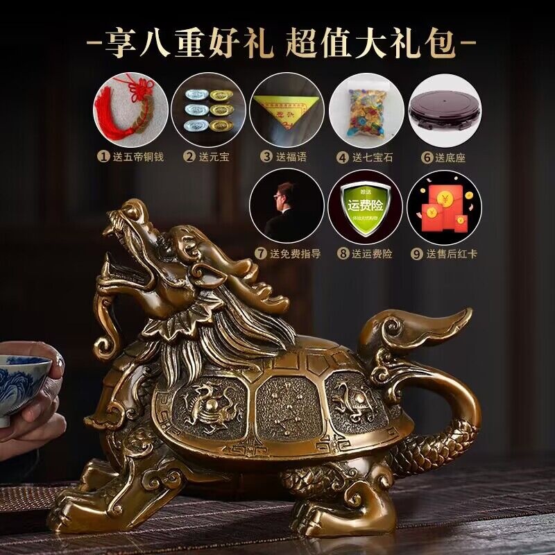 纯铜龙龟摆件镇宅招财家居客厅装饰大小号八卦招财龙头龟开业礼品