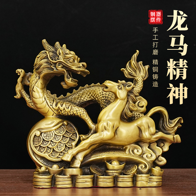 纯铜龙马精神摆件生肖龙生肖马金钱龙铜马客厅办公室送长辈工艺品