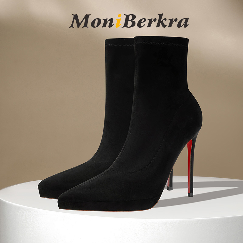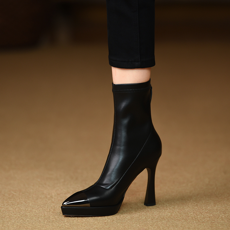 misili尖头弹力瘦瘦靴细跟短靴秋冬季新款10.2cm高跟鞋防水台女靴