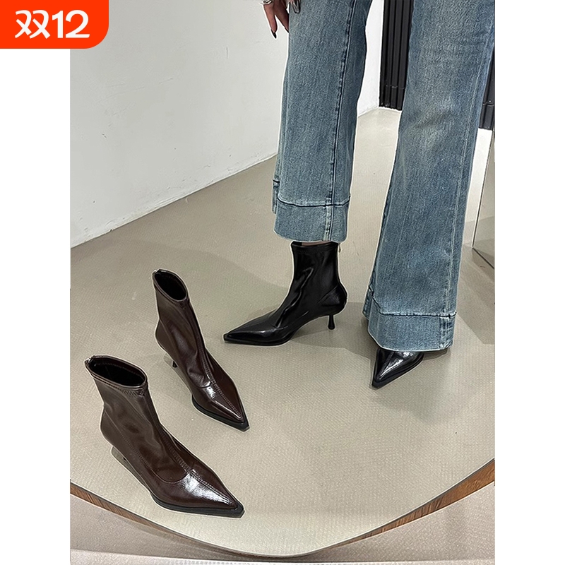 弹力瘦瘦靴女2025年秋冬新款尖头高跟短靴细跟防水台百搭时装靴子