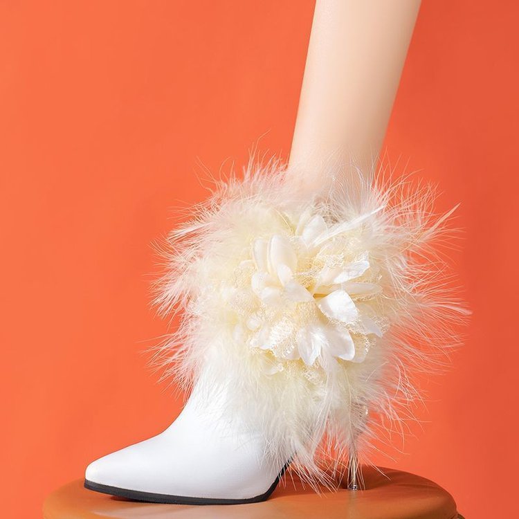 冬兔毛高跟细跟带毛毛加绒加厚雪地靴防水台女短靴子保暖棉鞋棉靴