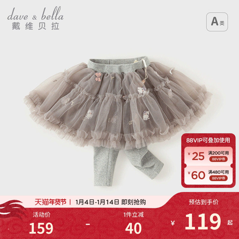 【商场同款】戴维贝拉女童裙裤秋季新款弹力网纱裙打底裤小童长裤