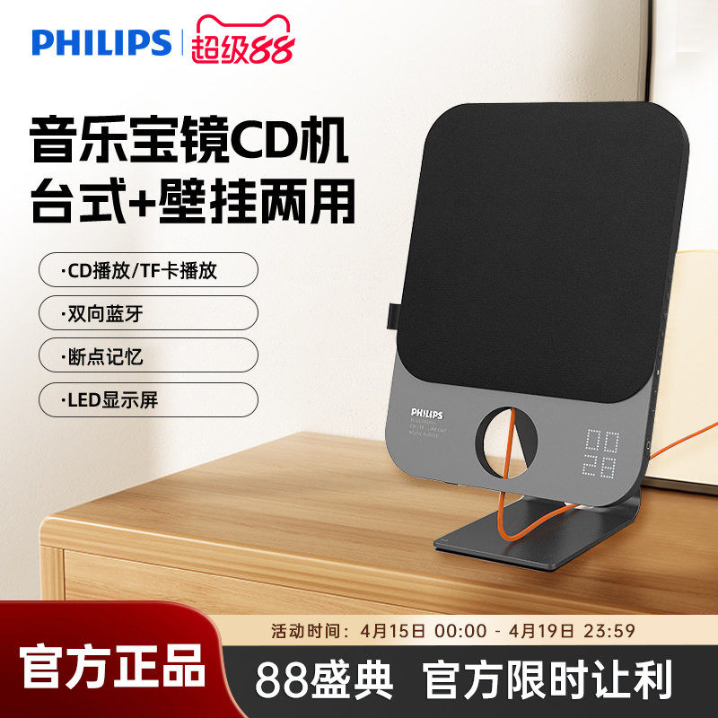 飞利浦CD机AZ7108发烧级蓝牙音乐专辑光盘碟片播放器台式壁挂音箱