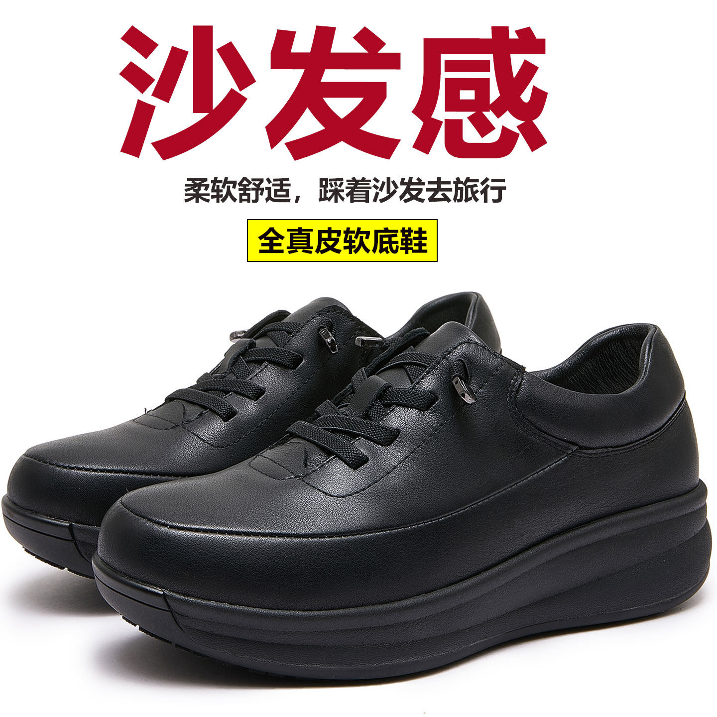 春秋软底厚底真皮软底休闲舒适工作鞋女不累脚摇摇鞋浅口妈妈单鞋