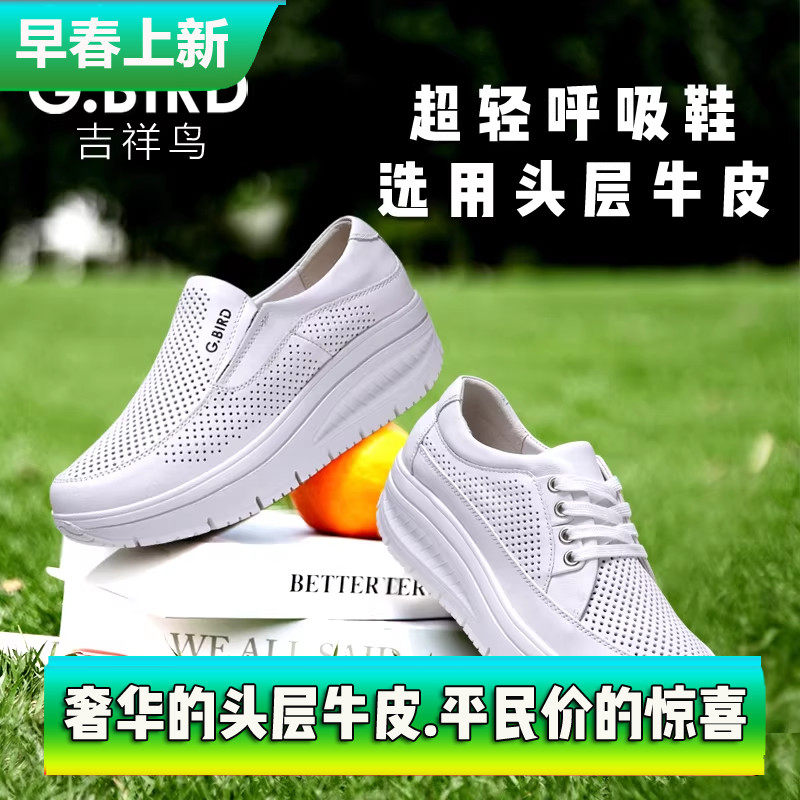吉祥鸟超轻女鞋2026春夏真皮休闲百搭摇摇鞋一脚蹬厚底小白鞋0706