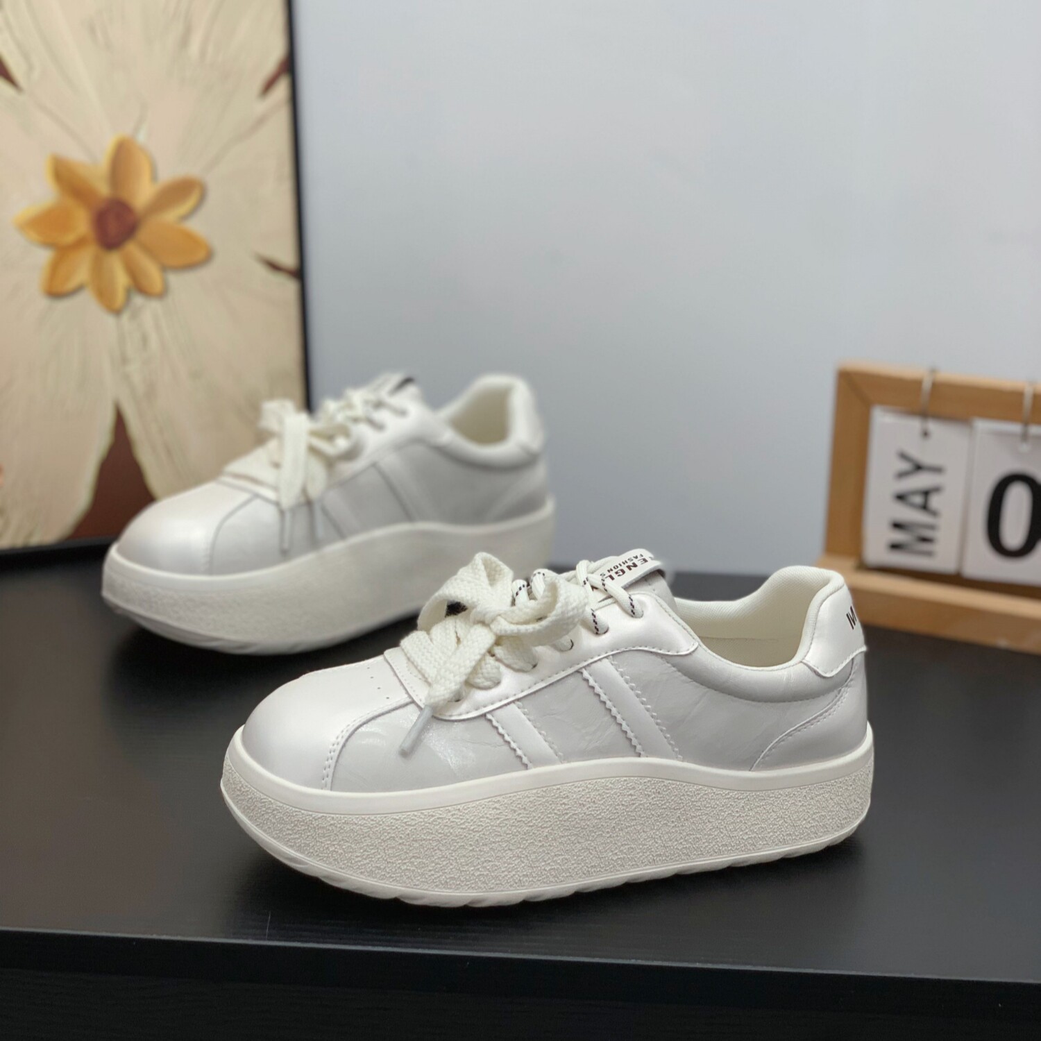 2026春夏新款真皮透气小白鞋厚底休闲单鞋松糕鞋女摇摇鞋增高女鞋