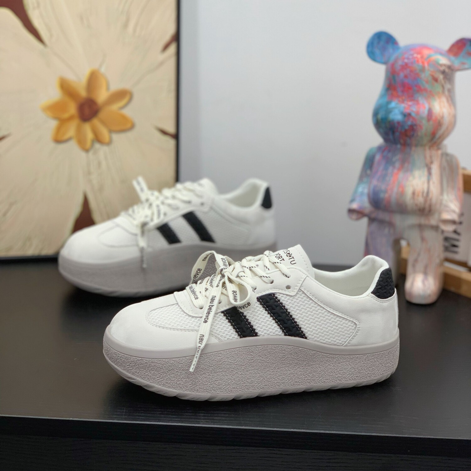 爆款厚底摇摇鞋透气网面德训鞋女2026春季新款复古板鞋真皮小白鞋
