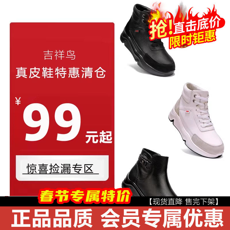 【正品特价】吉祥鸟真皮休闲女鞋百搭厚底坡跟运动松糕摇摇女单鞋