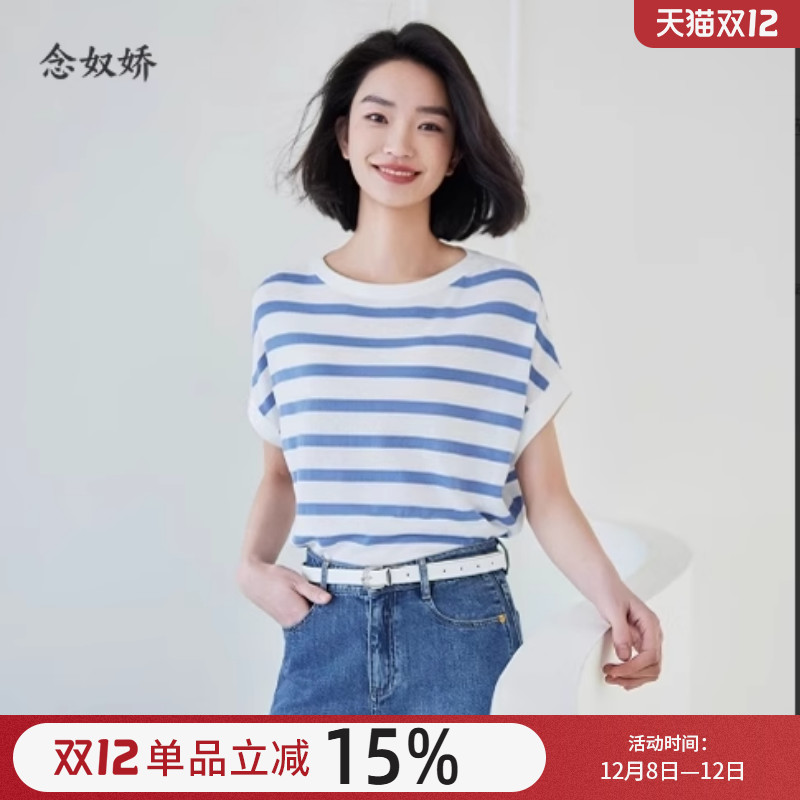 念奴娇经典条纹海军衫女宽松显瘦针织短袖女2025新款T恤女夏薄款