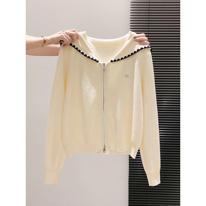 IIIVIVINIKO春夏新品海军领宽松落肩针织开衫外套女M310202601A