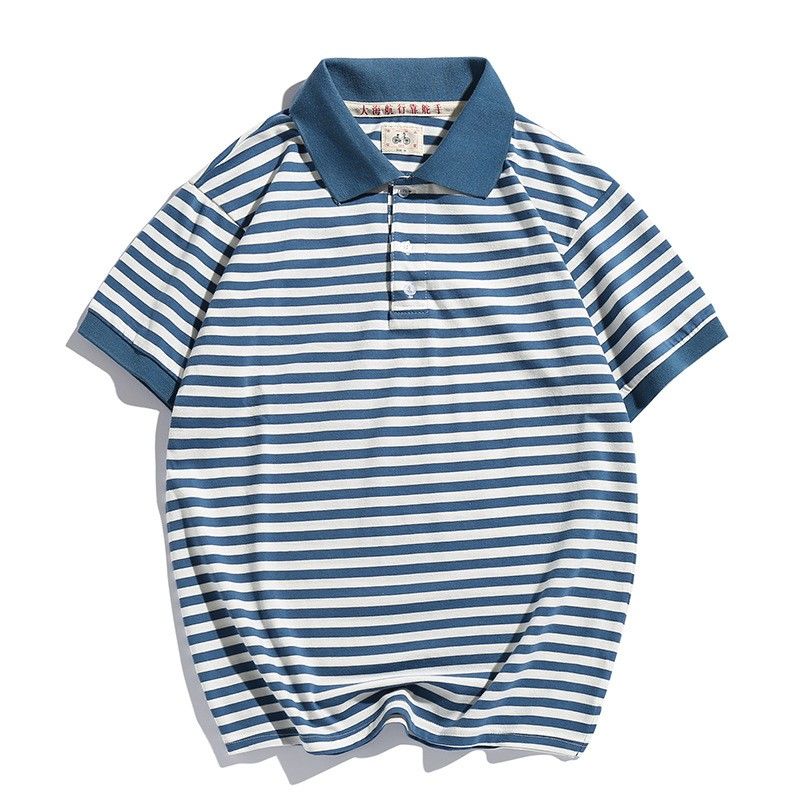 80年代夏季翻领t恤国潮做旧复古海魂衫怀旧海军衫青年短袖POLO衫