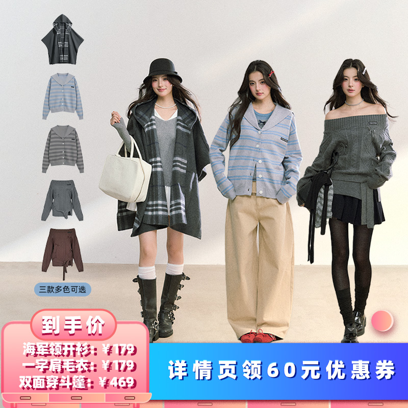 【所有女生的衣橱直播间】FPMZ海军领开衫+一字肩毛衣+双面穿斗篷