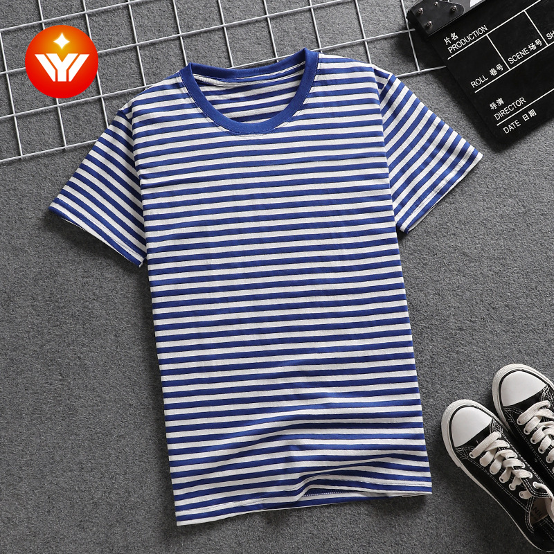 夏季韩版男女士短袖蓝白条纹t恤圆领大码海军衫情侣装海魂衫班服