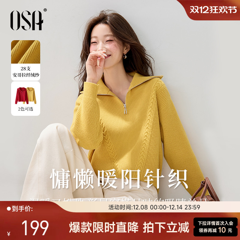 【暖阳针织】OSA欧莎海军领针织衫女冬新款慵懒复古绞花毛衣上衣