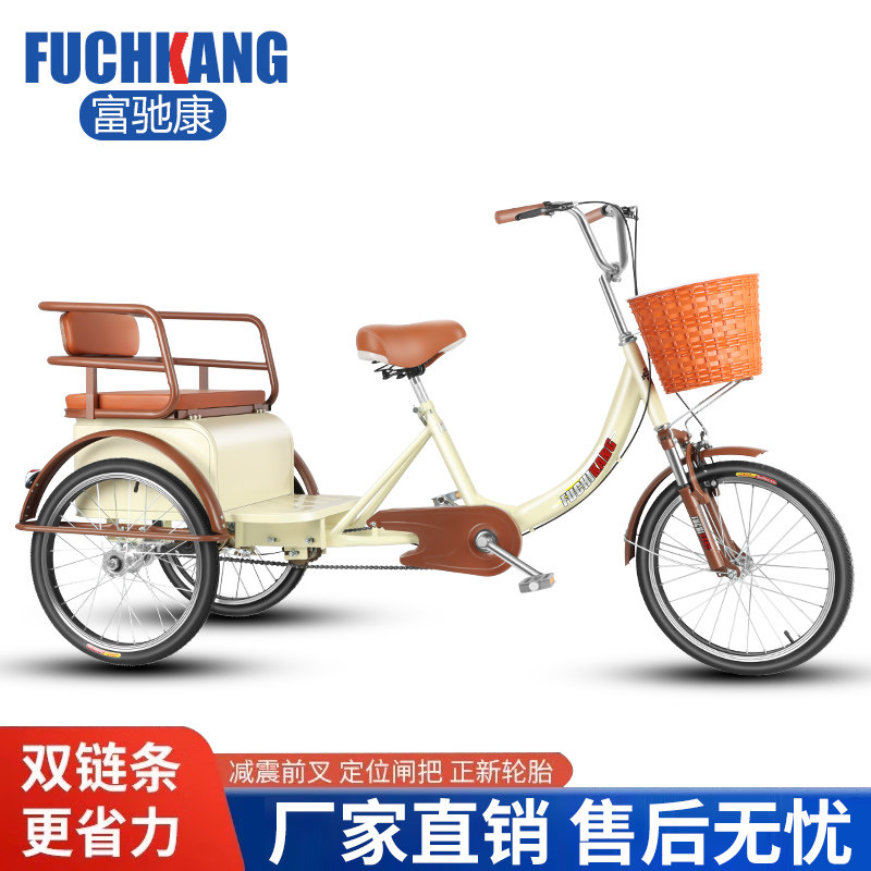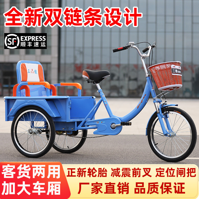 新款老年三轮车人力车老人脚蹬代步车双人车成人脚踏自行车带孩子