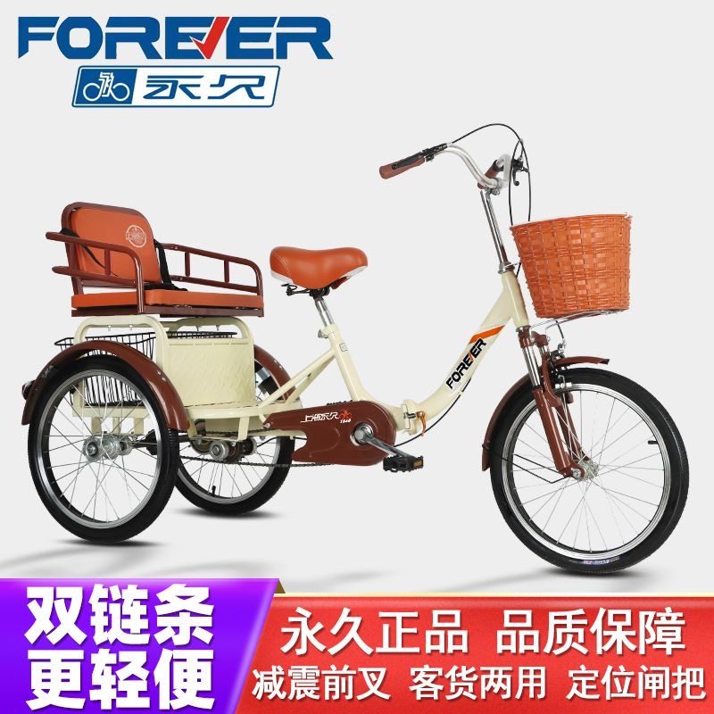 永久老年三轮车人力车老人代步车脚蹬双人车脚踏自行车成人三轮车