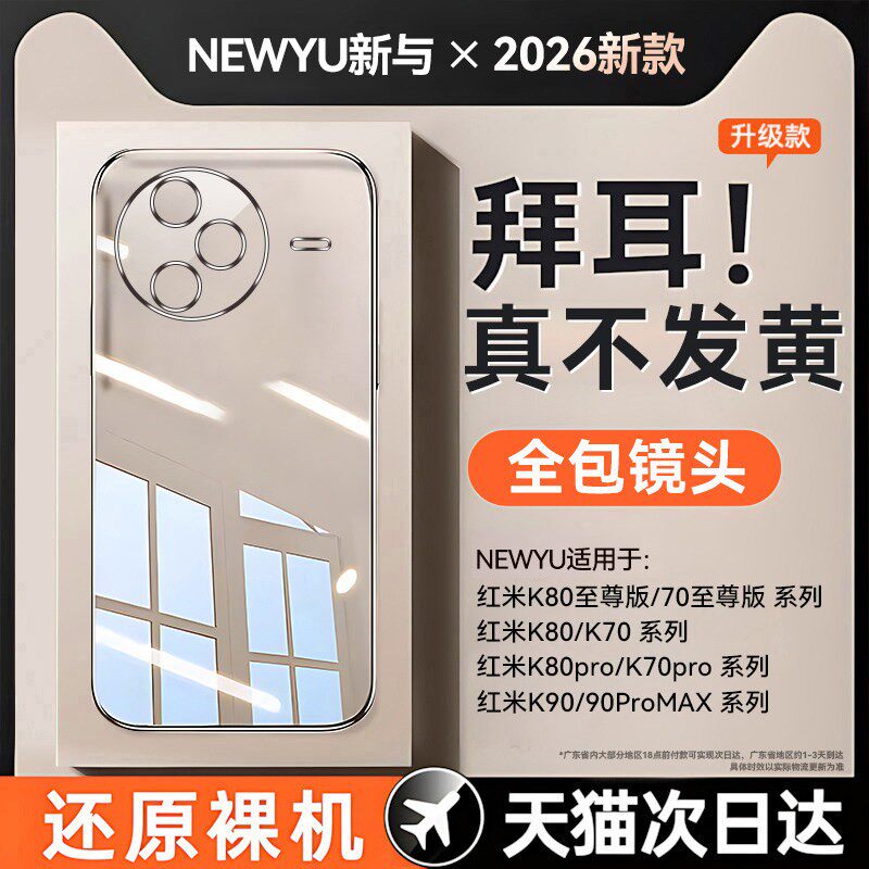 newyu适用红米k80手机壳红米k80pro新款透明K80至尊版防摔保护套全包Redmi超薄专用k70pro高级电镀软硅胶外壳