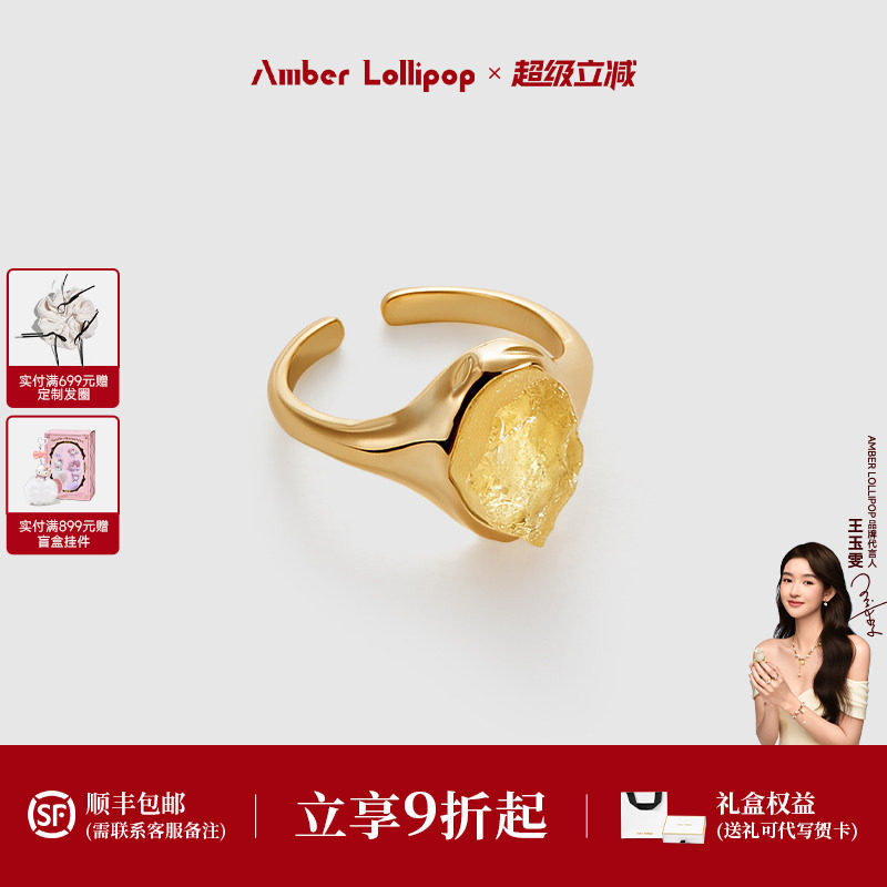 【明星同款】AmberLollipop黄水晶戒指女轻奢小众宝石开口食指环