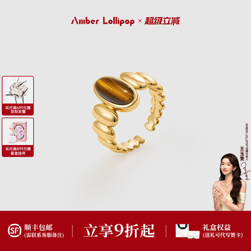 王玉雯同款 AmberLollipop天然虎眼石戒指女轻奢蛋面设计开口指环