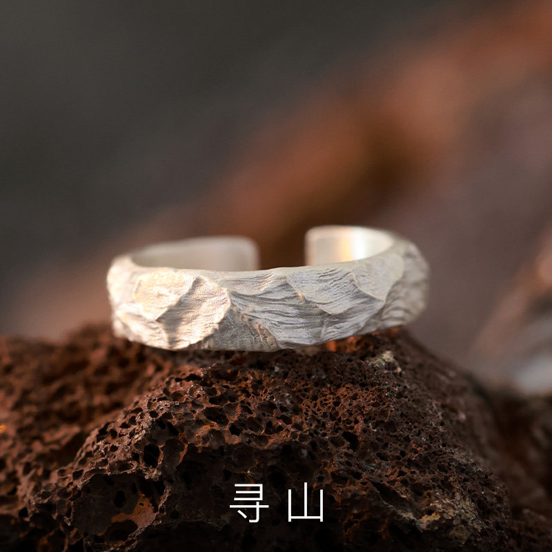闲工造物《寻山》999足银戒指男女 手工原创国风山指环可调节