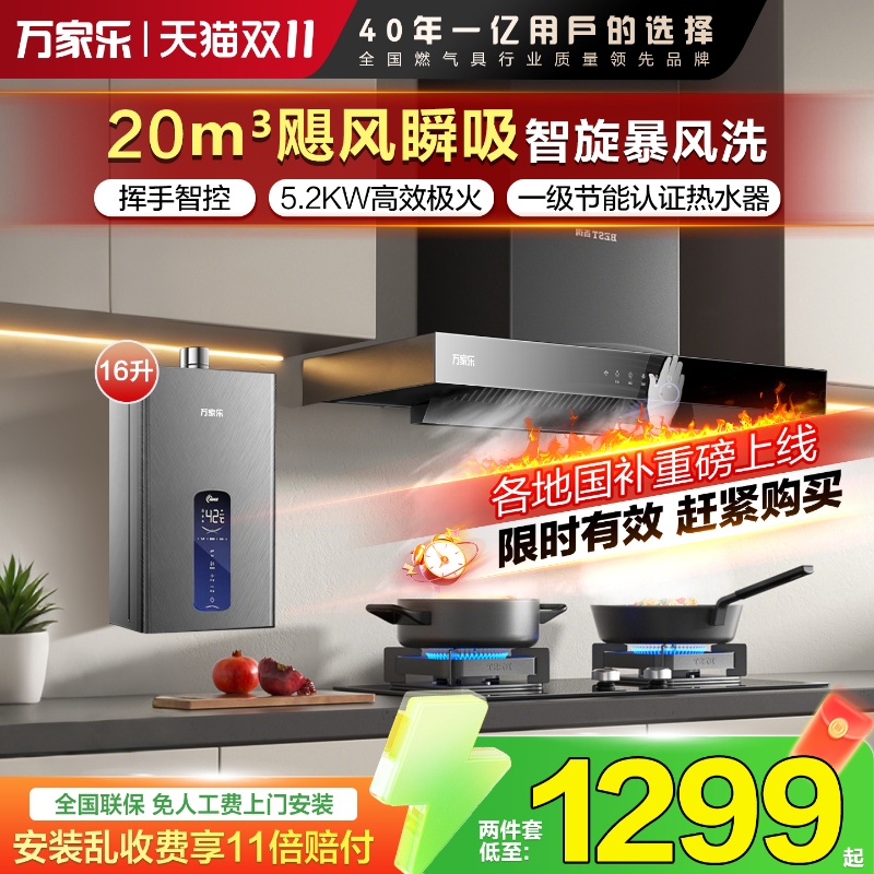 万家乐AK6顶侧双吸抽油烟机燃气灶热水器烟灶联动厨房三件套装