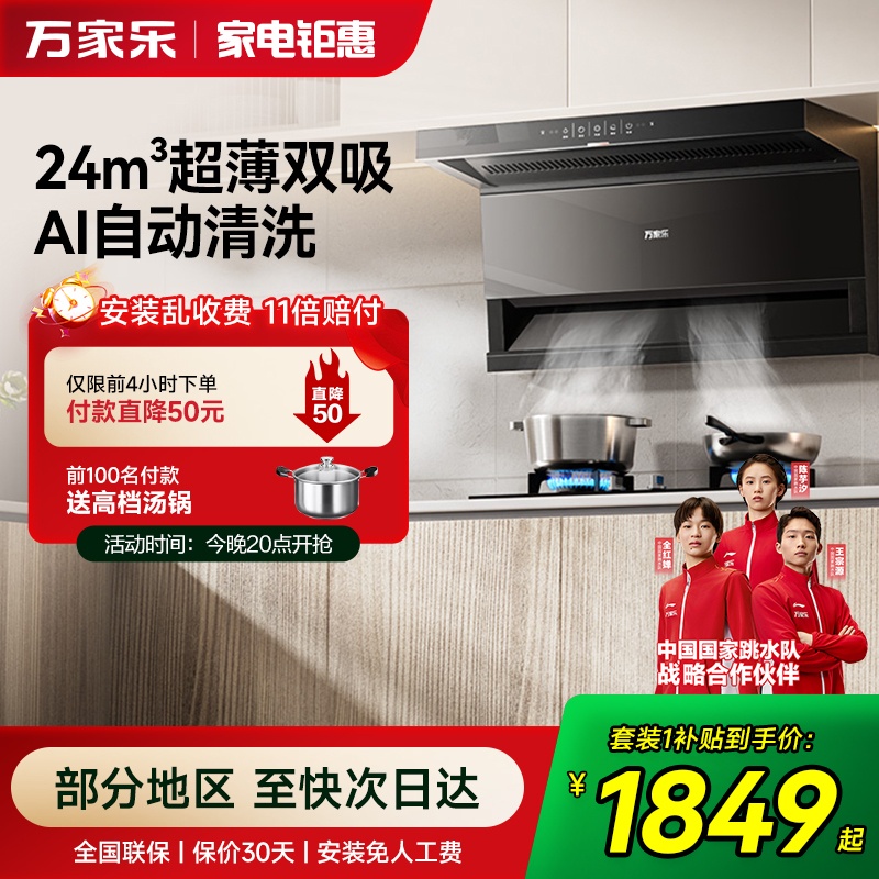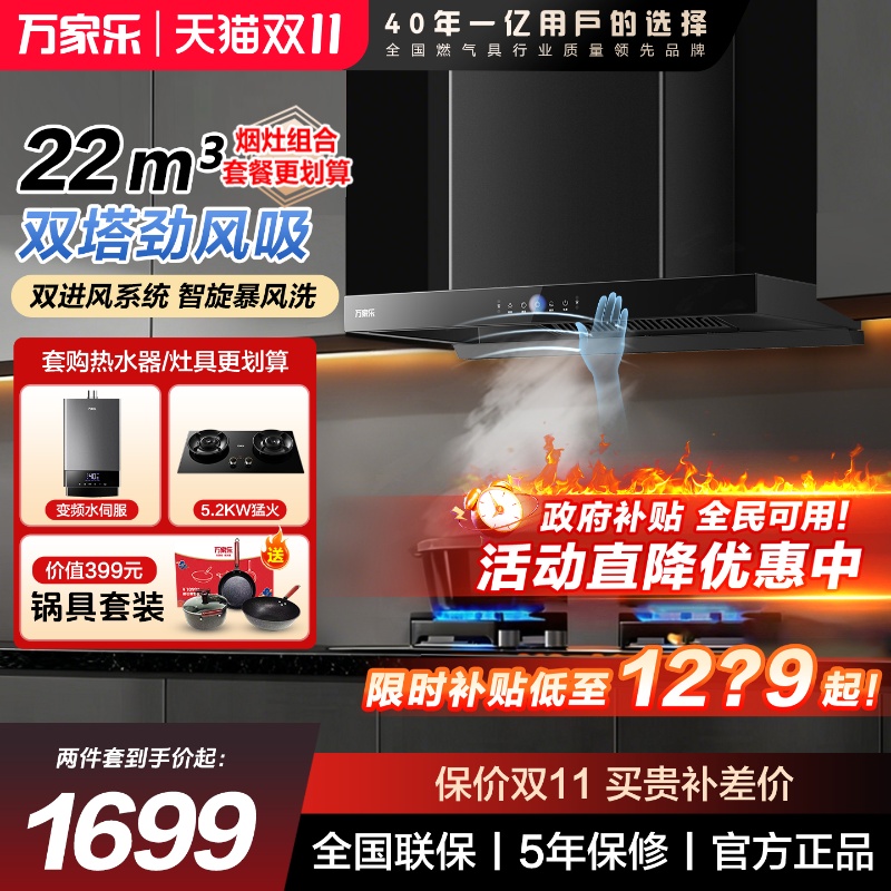 政府补贴万家乐油烟机燃气灶套装26大吸力超薄变频厨房三件套K7R3