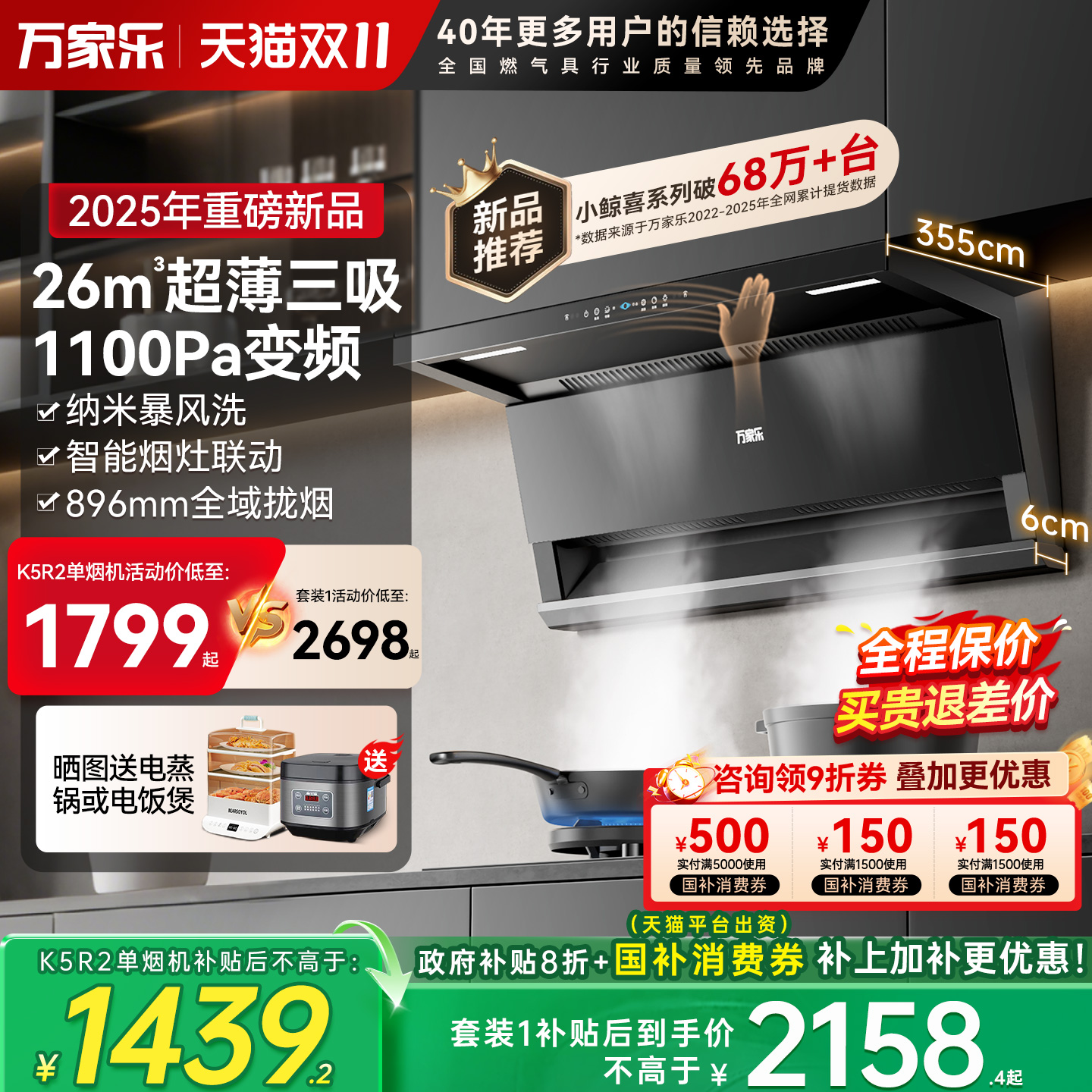 万家乐K3R2超薄抽吸油烟机燃气灶烟灶套装厨房家用顶侧双吸旗舰店