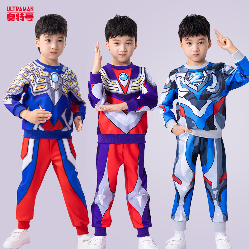 泽塔正品奥特曼衣服儿童秋装男童运动套装春秋长袖速干衣男童服装