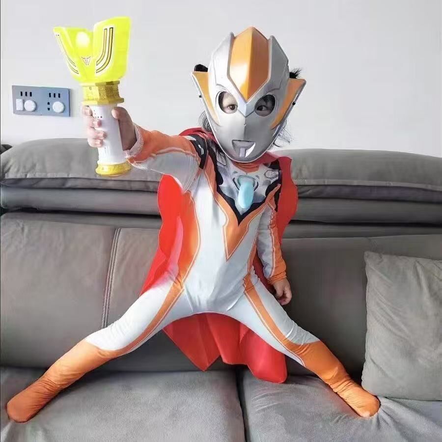 奥特曼衣服男童赛罗面具cosplay发光儿童迪迦女孩连体万圣节服装